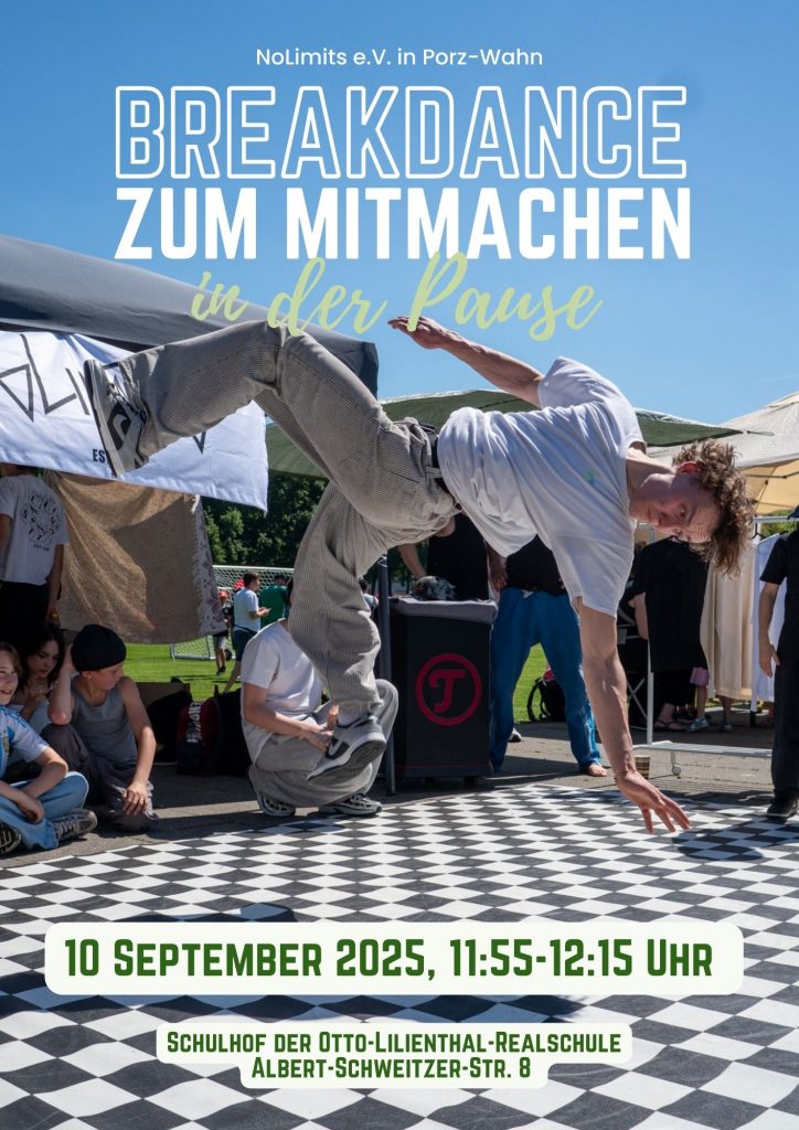 In einer ca. 10-minütigen Session erleben die Kinder/Jugendlichen Breakdance hautnah. Zwei erfahrene Tänzer zeigt erste Moves und Basics – von einfachen Schritten bis zu coolen Drehungen. Danach können die Schüler:innen selbst aktiv werden und die Bewegungen ausprobieren. Die Aktion fördert Bewegung, Rhythmusgefühl und Teamgeist – und macht vor allem jede Menge Spaß! Kostenlos!