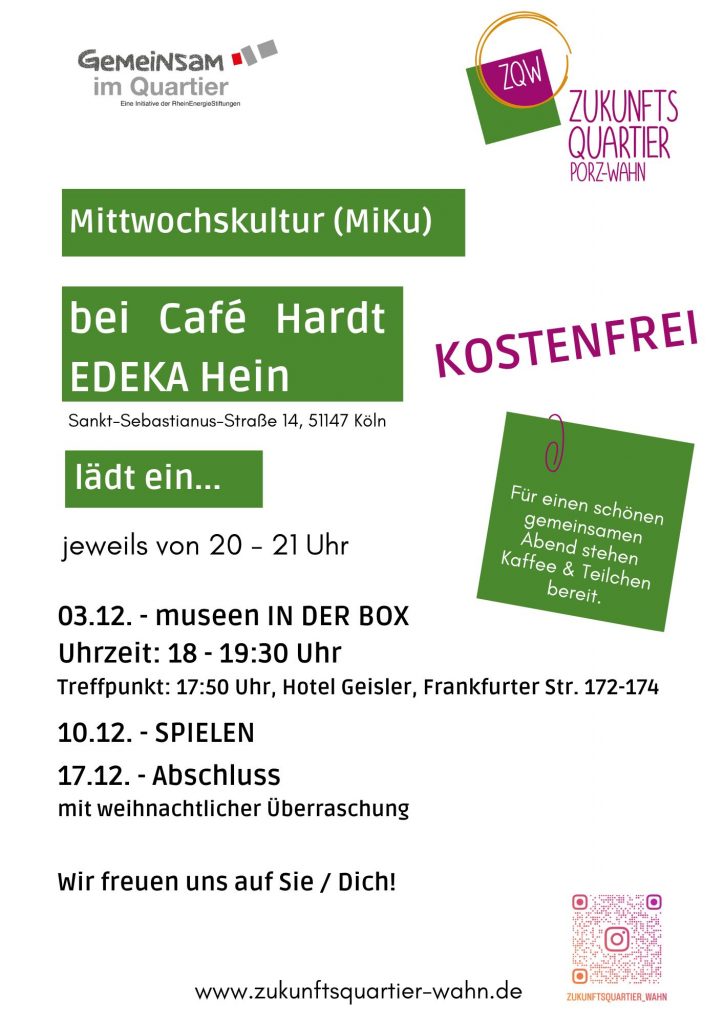 Und am 23.07. gibt’s das 2. Erzählcafé mit dem Museumsdienst der Stadt Köln.